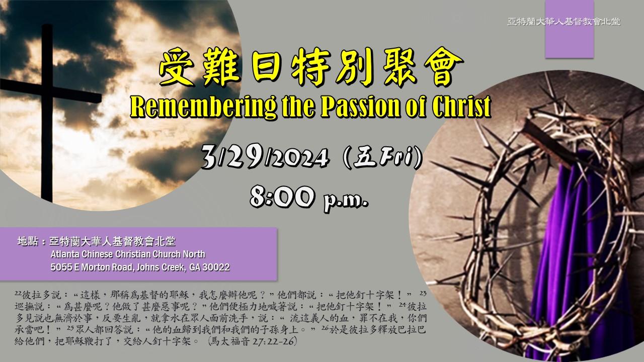 受难日特别聚会 3/29(五) 8:00 p.m.