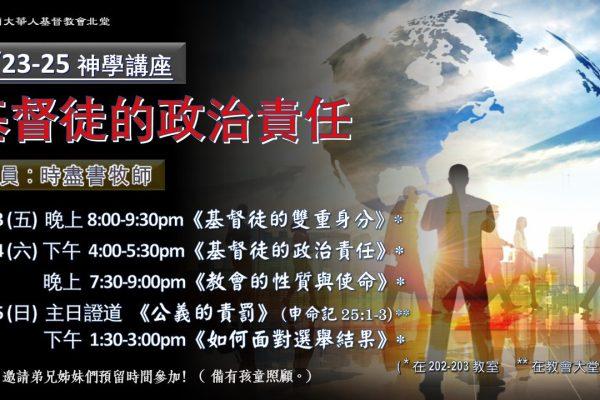 時盡書牧師 – “基督徒的政治責任” 02/25/2024 Posted By: yz 神學講座 中文 (繁體) pll_65dbc3332e1db 時盡書牧師 2/23/2024 ∼ 2/25/2024 北堂神學講座錄音、錄像。 基督徒的政治责任 ... Continue reading
